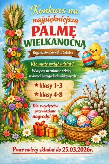Przypominamy o konkursie na najpiękniejszą palmę wielkanocną organizowanym przez świetlicę.